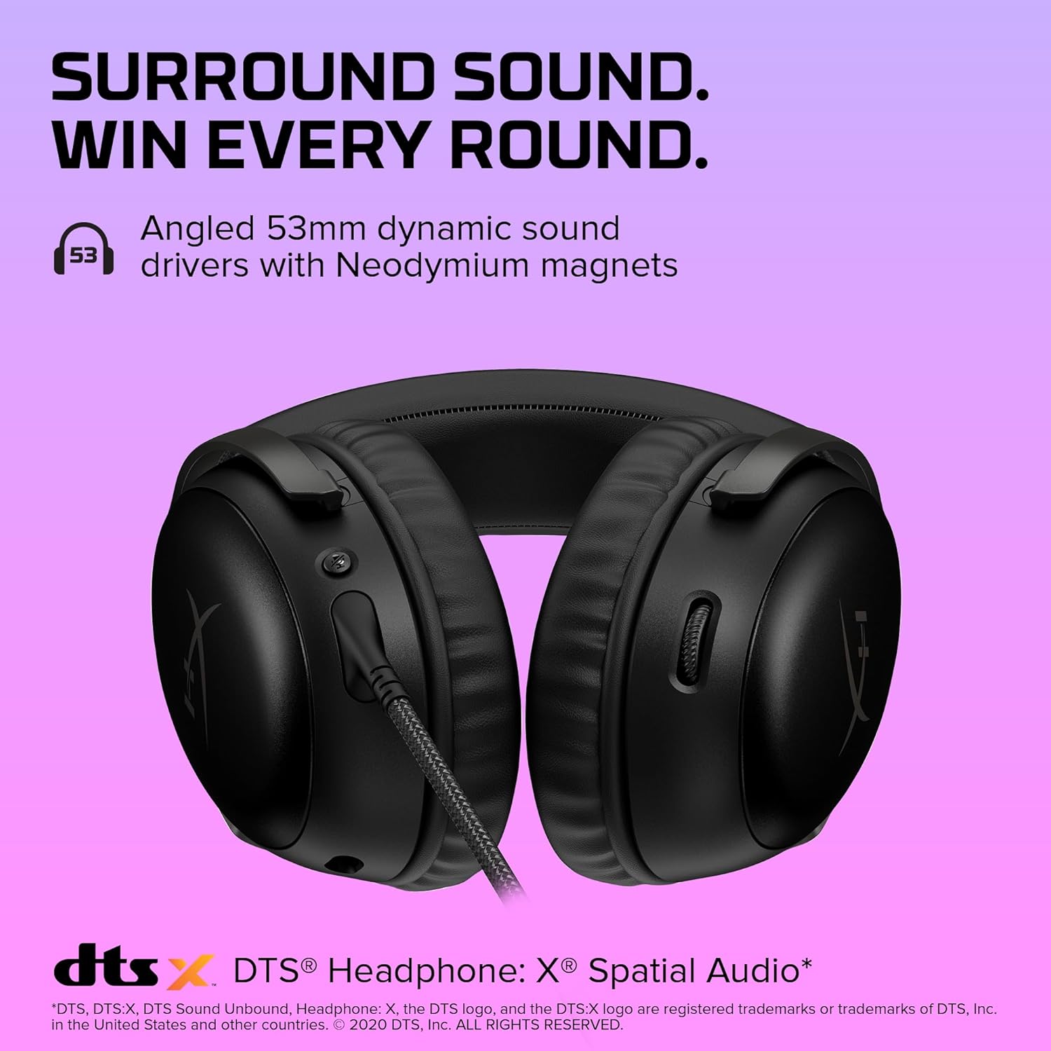 HyperX Cloud III – Wired Gaming Headset, PC, PS5, Xbox Series X|S, Angled 53mm Drivers, DTS Spatial Audio, Memory Foam, Durable Frame, Ultra-Clear 10mm Mic, USB-C, USB-A, 3.5mm – Black